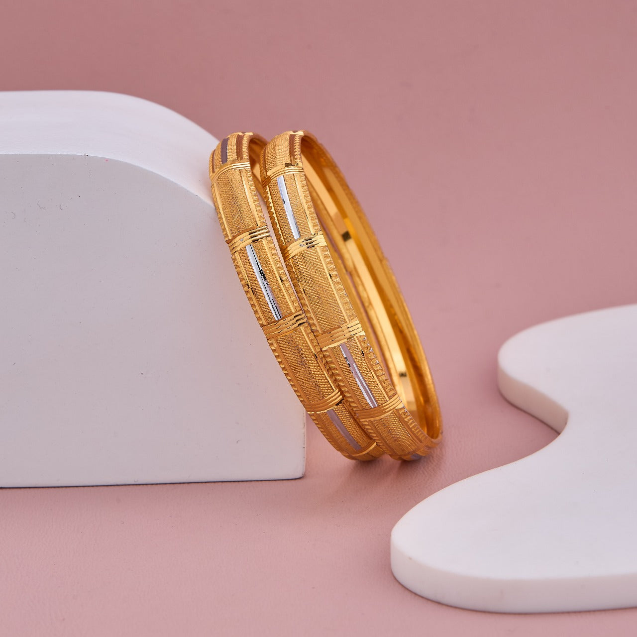 Classic Tradition Bangles with Golden Texture and Stone Highlights