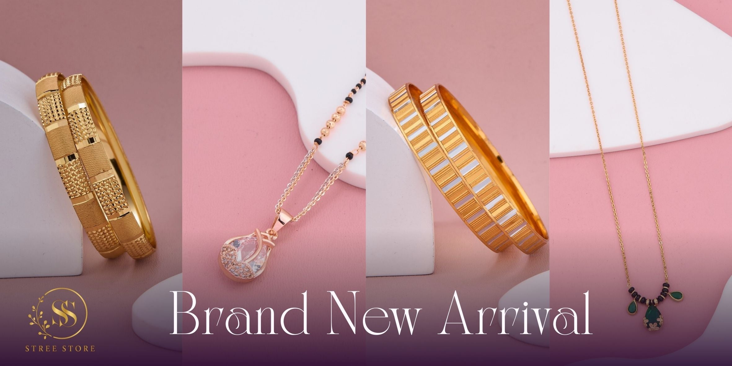 Stree Store with our latest jewellery arrivals. From contemporary mangalsutras to modern bracelets and elegant chains, every piece is crafted to keep you ahead of the trend while staying rooted in tradition. Designed with love and styled for the moment, these fresh additions are perfect for women who love to evolve their look with elegance.