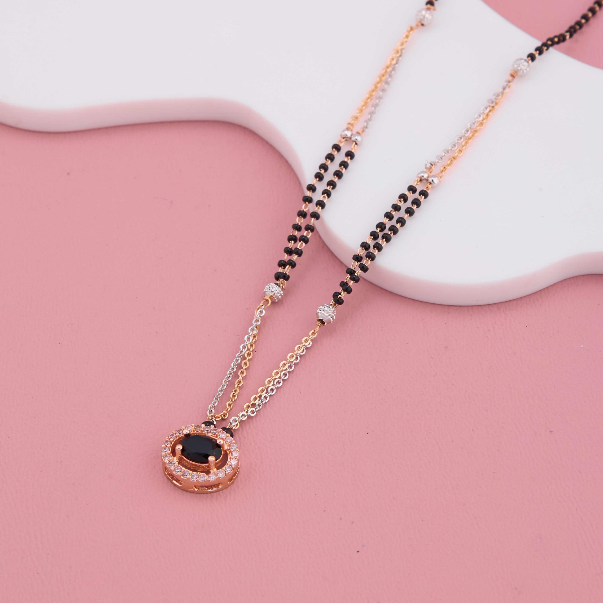 Black Stone Halo Pendant Mangalsutra in Rosegold & Silver Strands